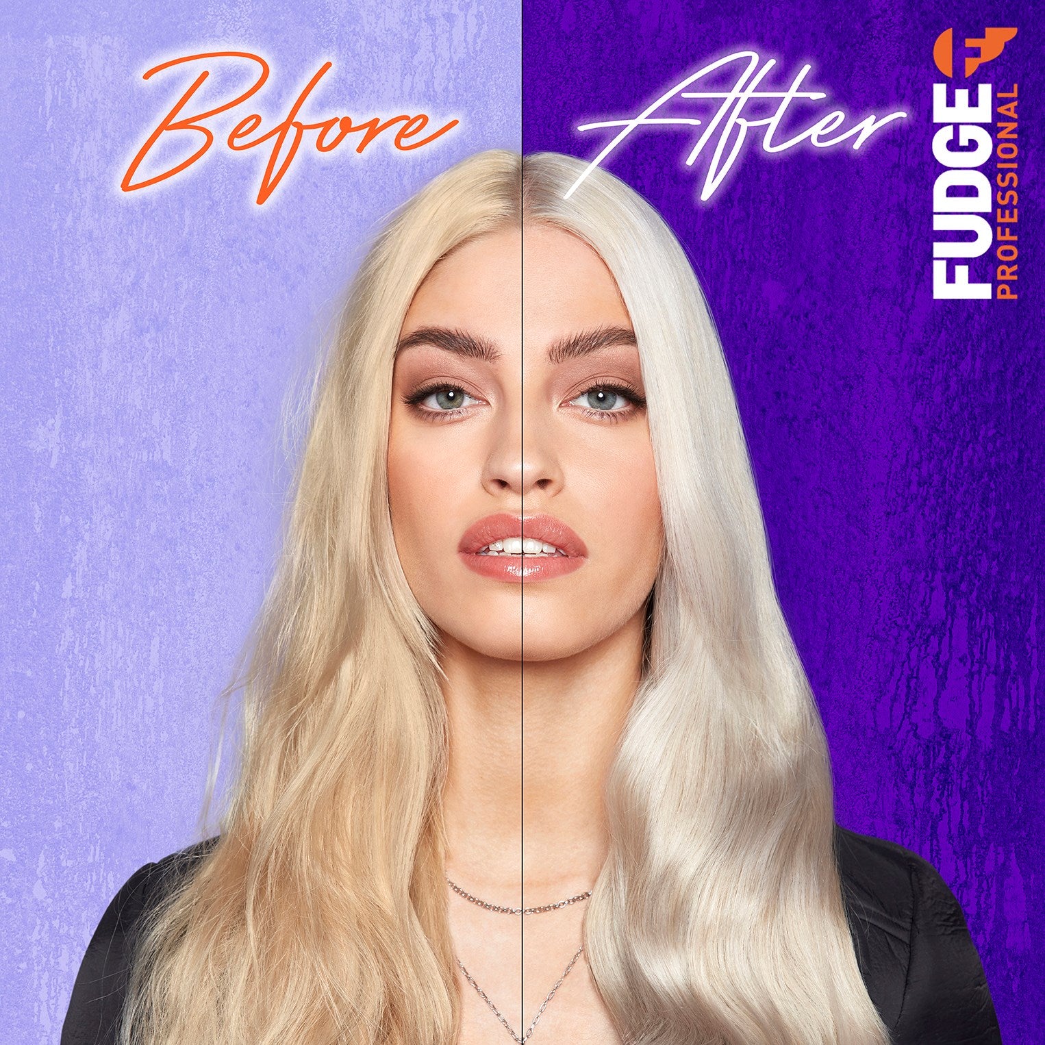 Ett av Nordens mest sålda silverbalsam har nu blivit ännu bättre! Clean Blonde Damage Rewind Violet Toning Conditioner från Fudge tar effektivt bort gula och varma nyanser i blonda hår utan att vare sig torka ut eller slita det minsta på håret.