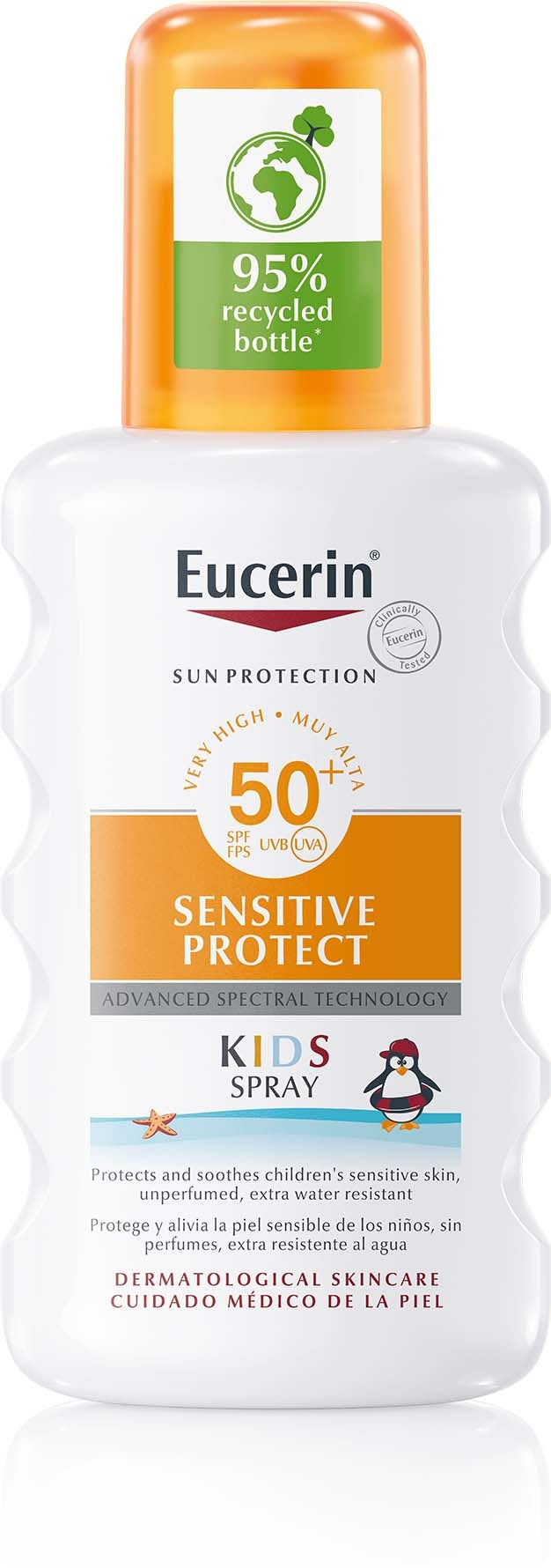 Eucerin Kids solspray är extra vattenresistent och innehåller inte någon parfym.
