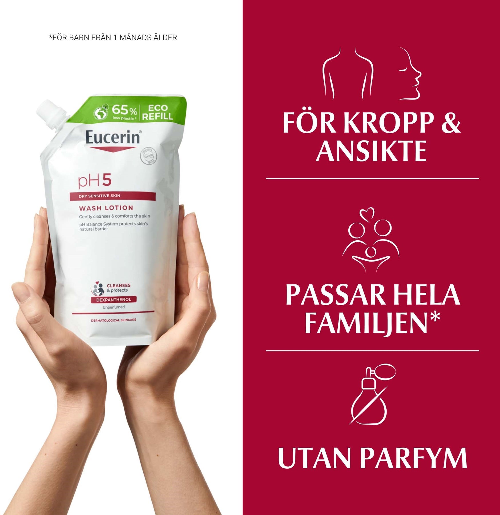 Du har känslig hud eller typ I-allergier eller vill ha en mild rengöring som alla i familjen kan använda, även barn: Eucerin pH5 Washlotion är en mycket mild rengöringsprodukt för daglig användning.