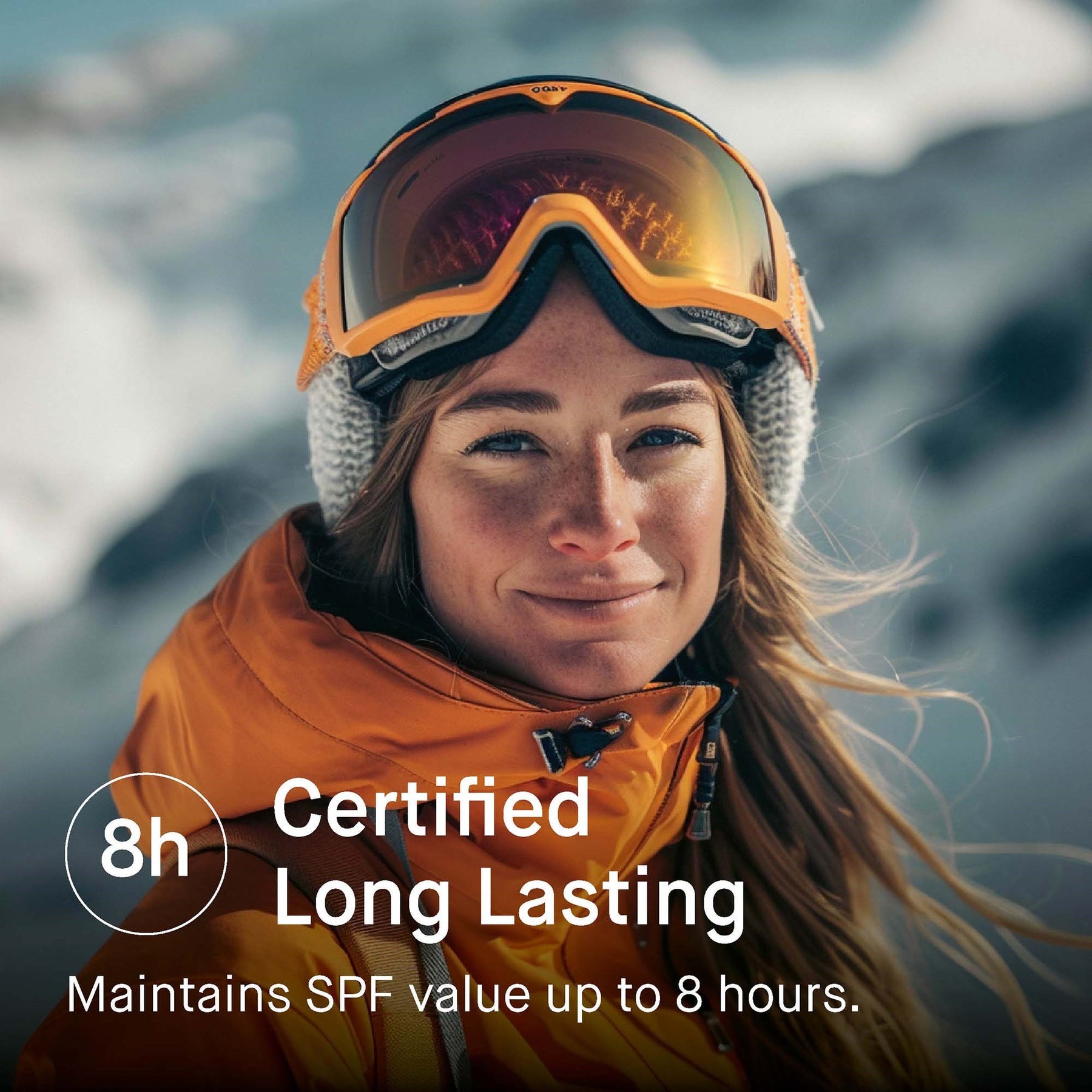 Innehåller mycket högt UVA-skydd i förhållande till UVB-skyddet. Maximalt antal stjärnor enligt Boots Star Rating och PA-test. Lämplig för veganer. Innehåller ej konserveringsmedel eftersom aerosolflaskan inte öppnas. Parfymfri.