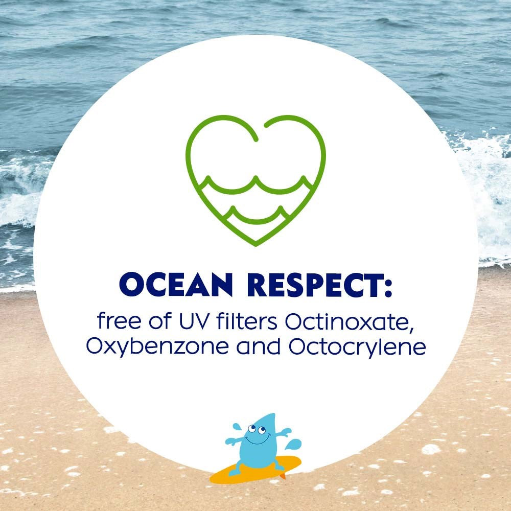 Användning: Skaka väl innan användning. Spraya inte direkt i ansiktet. Undvik inandning. Applicera rikligt innan du går ut i solen. Rekommenderad mängd för barn är 20ml. Återapplicera ofta samt efter bad/svett/handdukstorkning. För lite produkt reducerar skyddsnivån. Vistas inte för länge i solen även om du använder solskydd. Överexponering av solen utgör en hälsorisk. Skydda späd och småbarn mot direkt solljus. Låt absorberas helt. Undvik direkt kontakt med textilier och hårda ytor för att undvika fläckar. Bär skyddande kläder och använd tillräckligt med solskydd på de delar som inte är skyddade. Njut av lek, bad och familjetid! Återvinn förpackningen som plast.