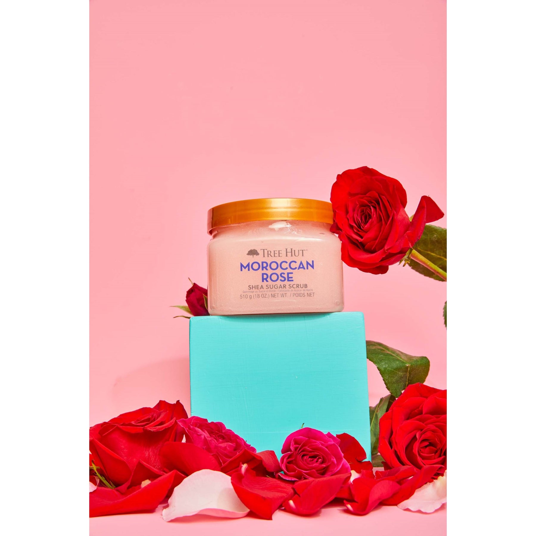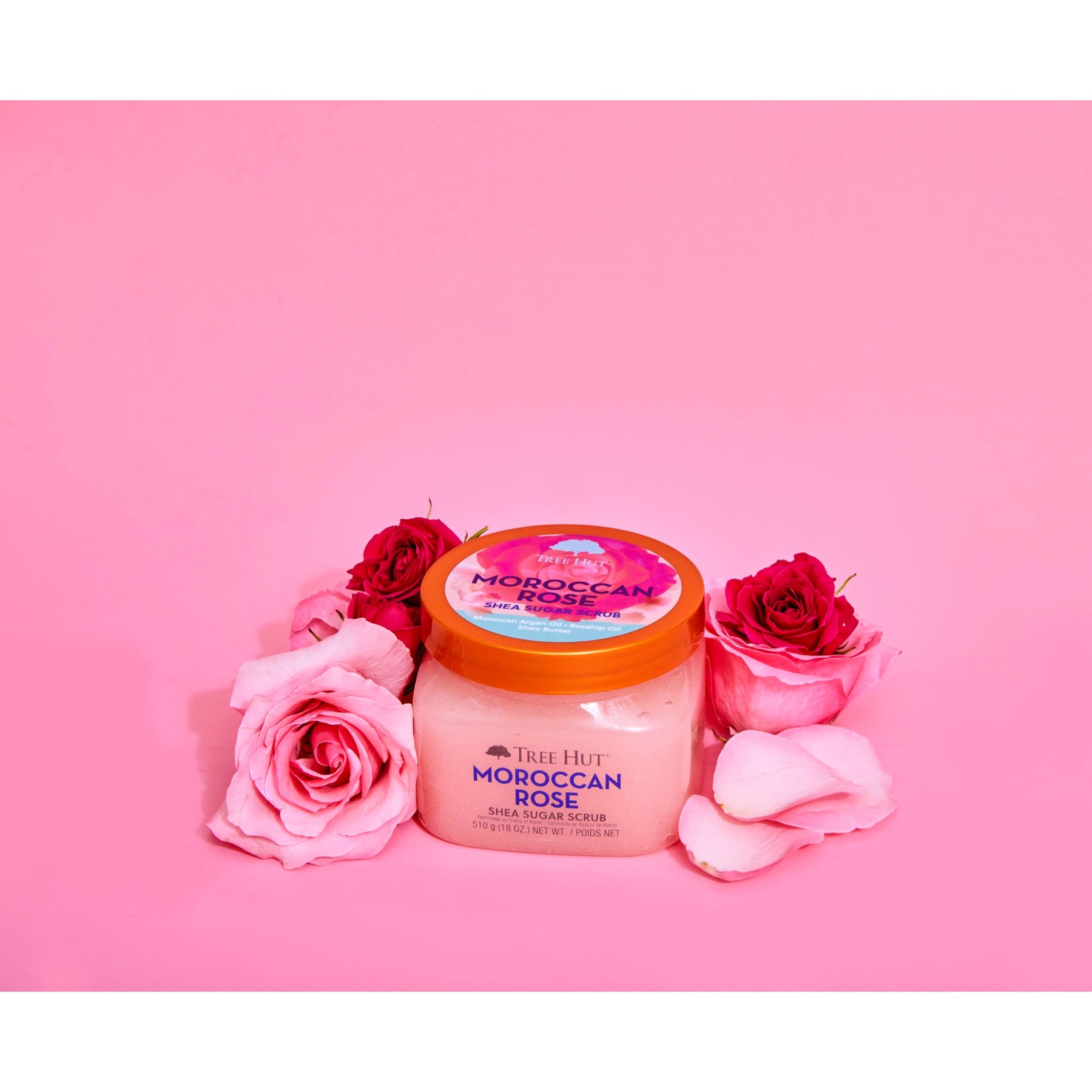 Shea Sugar Scrub Moroccan Rose är en sockerskrubb för kroppen som ger en skonsam exfoliering. Sockerkornen som finns i skrubben exfolierar försiktigt döda hudceller samt lämnar huden mjuk och smidig. Skrubben doftar av marockansk ros.