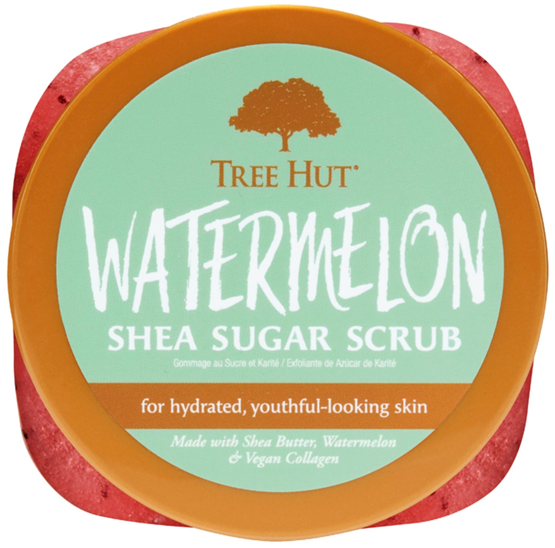 Shea Sugar Scrub Watermelon är en skonsam och näringsgivande sockerskrubb för kroppen som ger en intensiv exfoliering för en mjuk och glänsande hud. Skrubben innehåller organiskt sheasmör som återfuktar, ger näring och gör huden mjuk samtidigt som det främjar hudens elasticitet, AHA ger huden ett fräschare utseende och naturliga oljor vårdar huden för att förhindra torrhet samt balanserar fukt för en frisk lyster. Skrubben har en fräsch, ljuvlig doft av vattenmelon.Den är vegansk samt fri från parabener och sulfater.