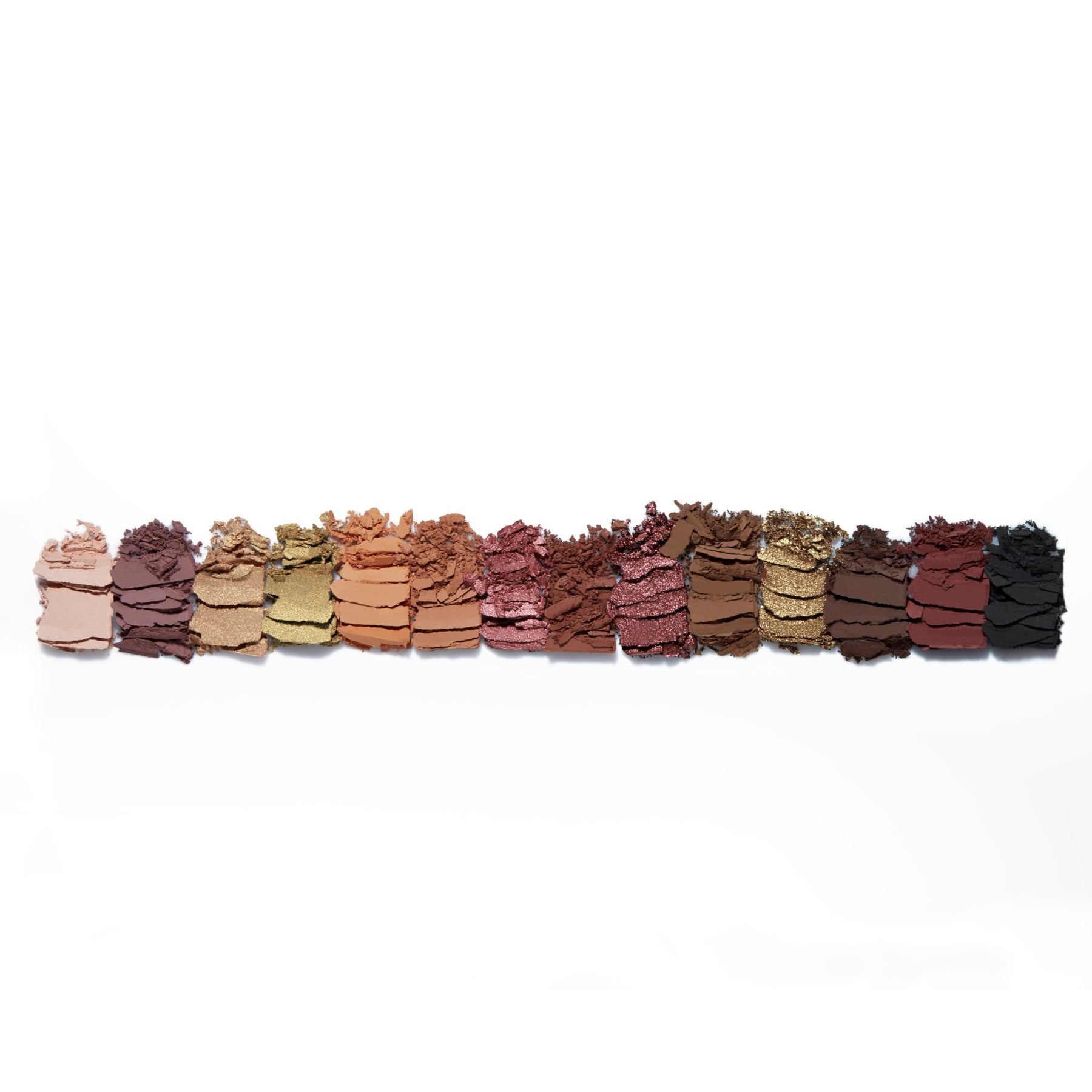 NYANSER: Tempera: ultra-matte velvety beige Glistening: iridescent gold with a hint of pink reflect Orange Soda: ultra-matte pastel peach Rose Pink: rose gold with a soft pink iridescent hue Sultry: a hybrid satin metallic finish warm chocolate brown Bronze: metallic gold bronze Mulberry: ultra-matte mulberry Dusty Rose: ultra-matte dusty lilac Fairy: multi-dimensional light gold Burnt Orange: ultra-matte deep orange Sienna: ultra-matte earthy brown Rustic: ultra-matte deep cinnamon brown Cyprus Umber: ultra-matte dark coffee Noir: ultra-matte deep carbon black