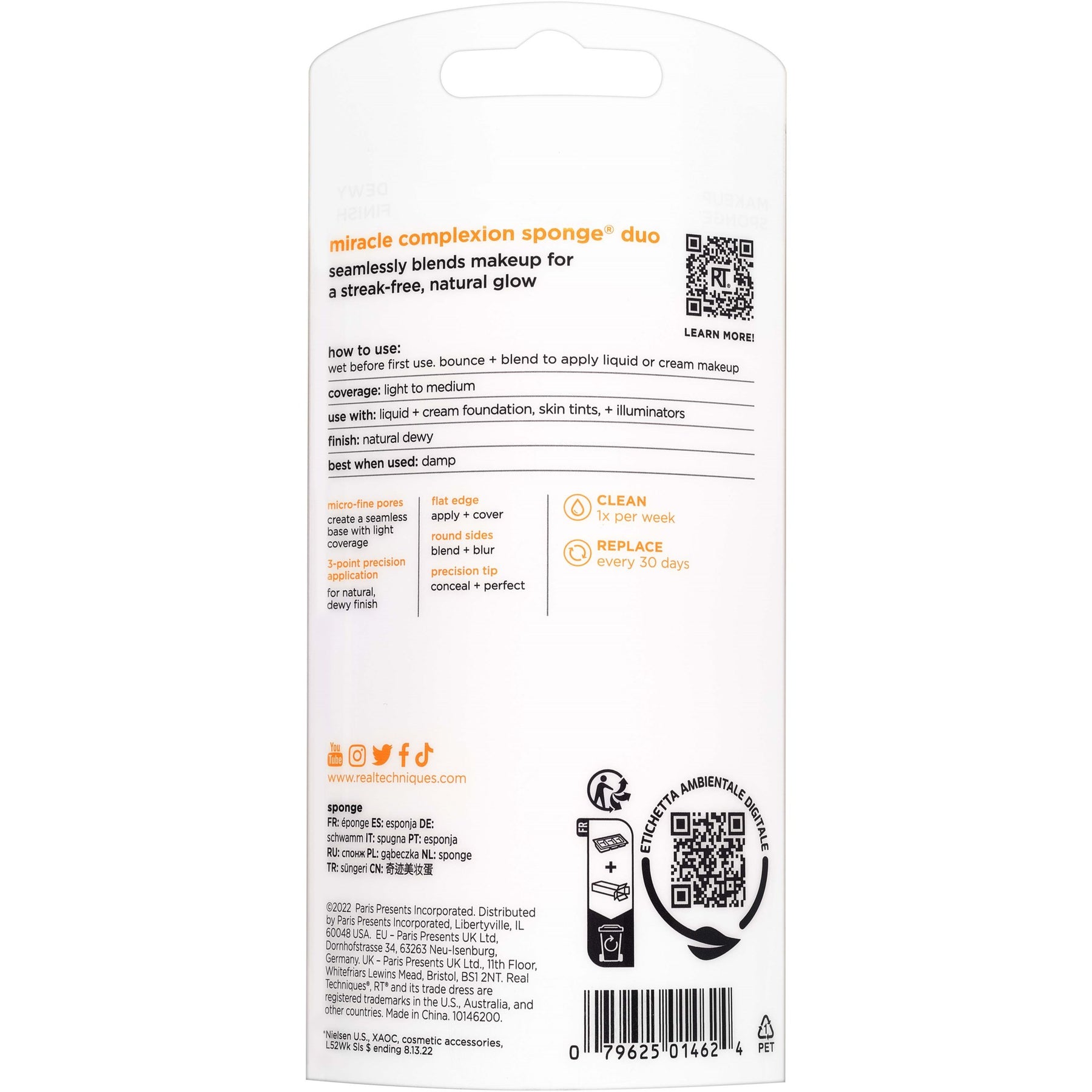 Användning: Fukta Miracle Complexion Sponge lätt med vatten innan applicering av flytande produkter för att minska risken att produkten absorberas in i svampen. Applicera foundation genom att dutta eller med lätt tryckande rörelser arbeta in den på huden med den rundade delen på miracle sponge. För att lägga produkt under ögonen rekommenderas användning av den platta toppen på miracle sponge.