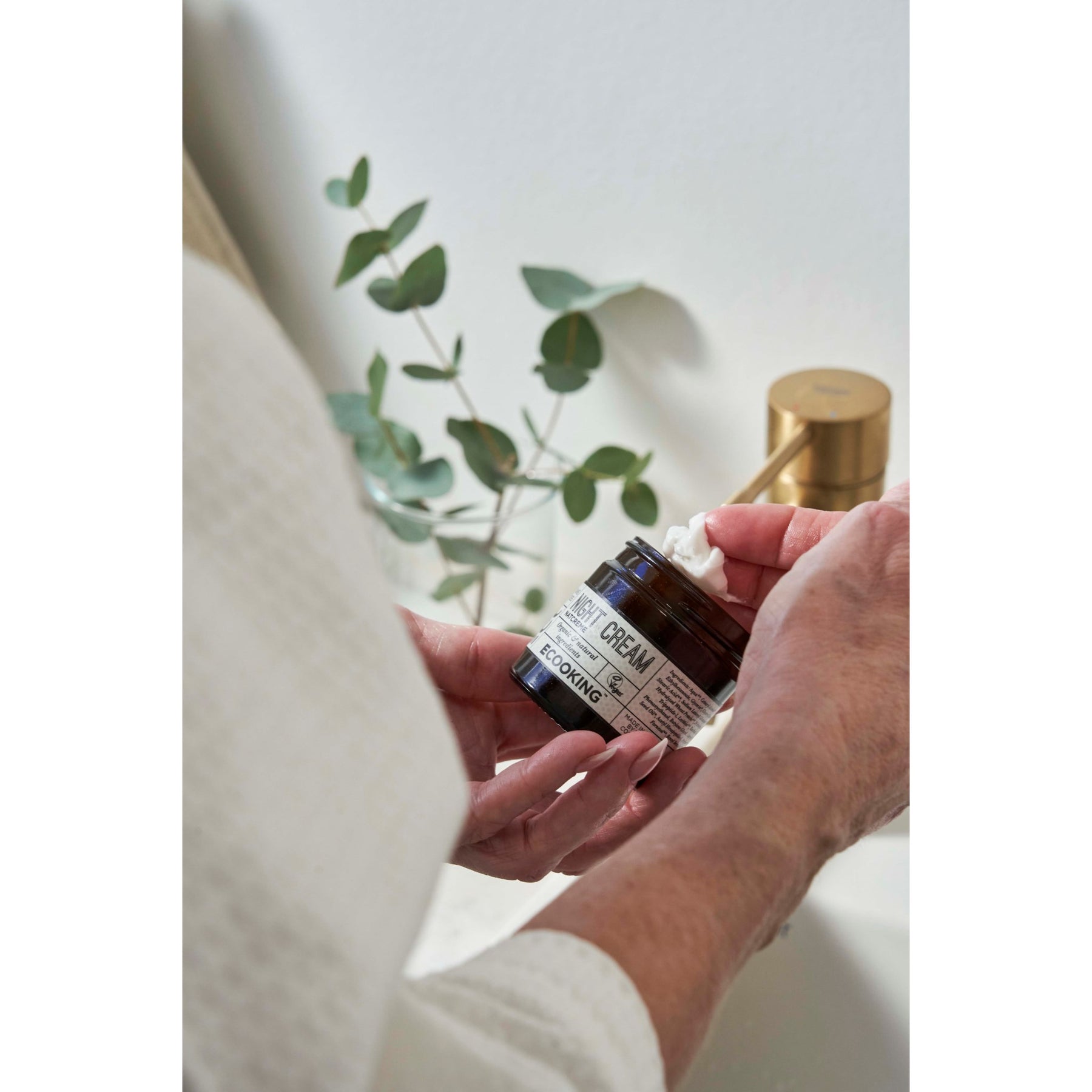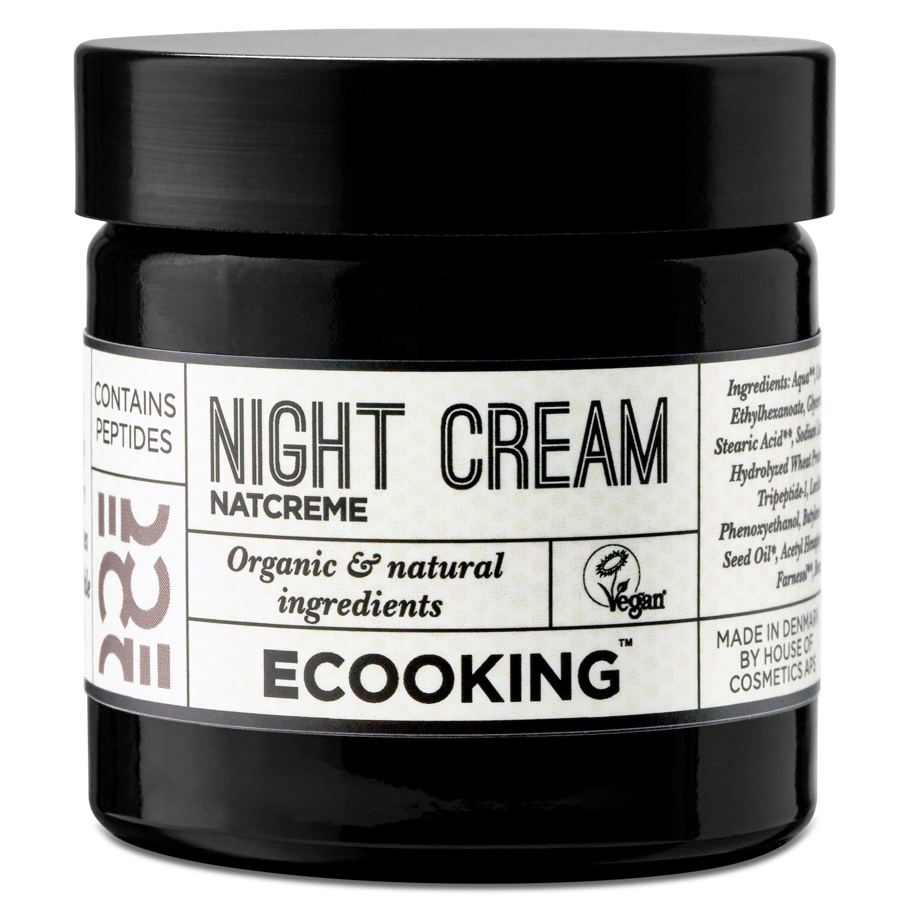 Ecooking Nattkräm minskar synligheten av rynkor vid kontinuerlig användning. Argireline är en hexapeptide, dvs. 6 naturliga aminosyror som tillsammans minskar djupet i rynkor. Rynkor uppstår när ansiktsmusklerna överstimuleras. Argireline fungerar på samma sätt som botox i den mening att det får musklerna att slappna av naturligt. Trylagen boostar kollagenet i huden som gör att huden bevarar sitt ungdomliga utseende. Samtidigt ger krämen en långvarig fukt till huden.